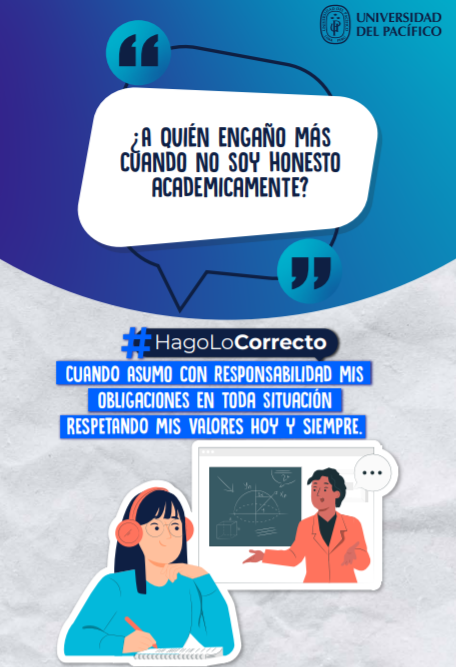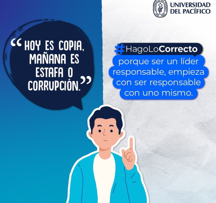 La campaña de integridad 2021-2022 de la Universidad del Pacífico se difundió bajo el hashtag #HagoLoCorrecto, con el propósito de promover la prevención del fraude académico y fortalecer la cultura de honestidad en nuestra comunidad estudiantil.